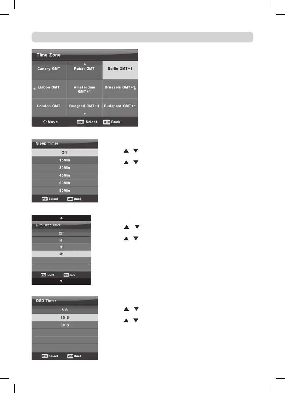 Premere / per selezionare Timer di spegnimento, quindi premere