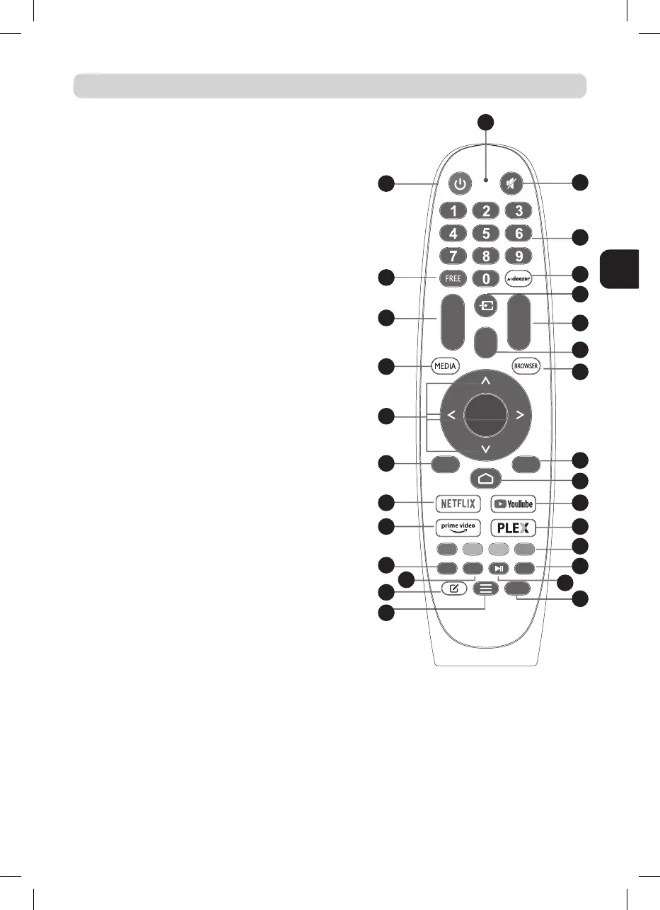 1) POWER: Switches the TV between ON and standby mode.