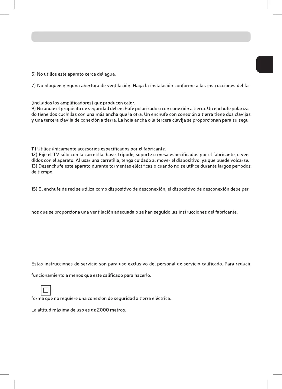 14) Para reducir el riesgo de incendio o descarga eléctrica, no exponga el TV a la lluvia ni a la humedad.