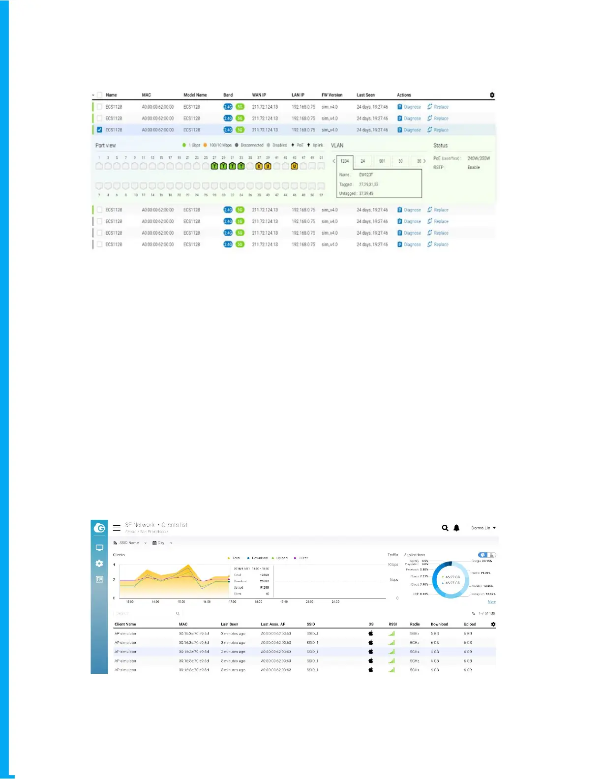 Figure 14 - Client list view with Layer 7 application aware traffic dashboard
