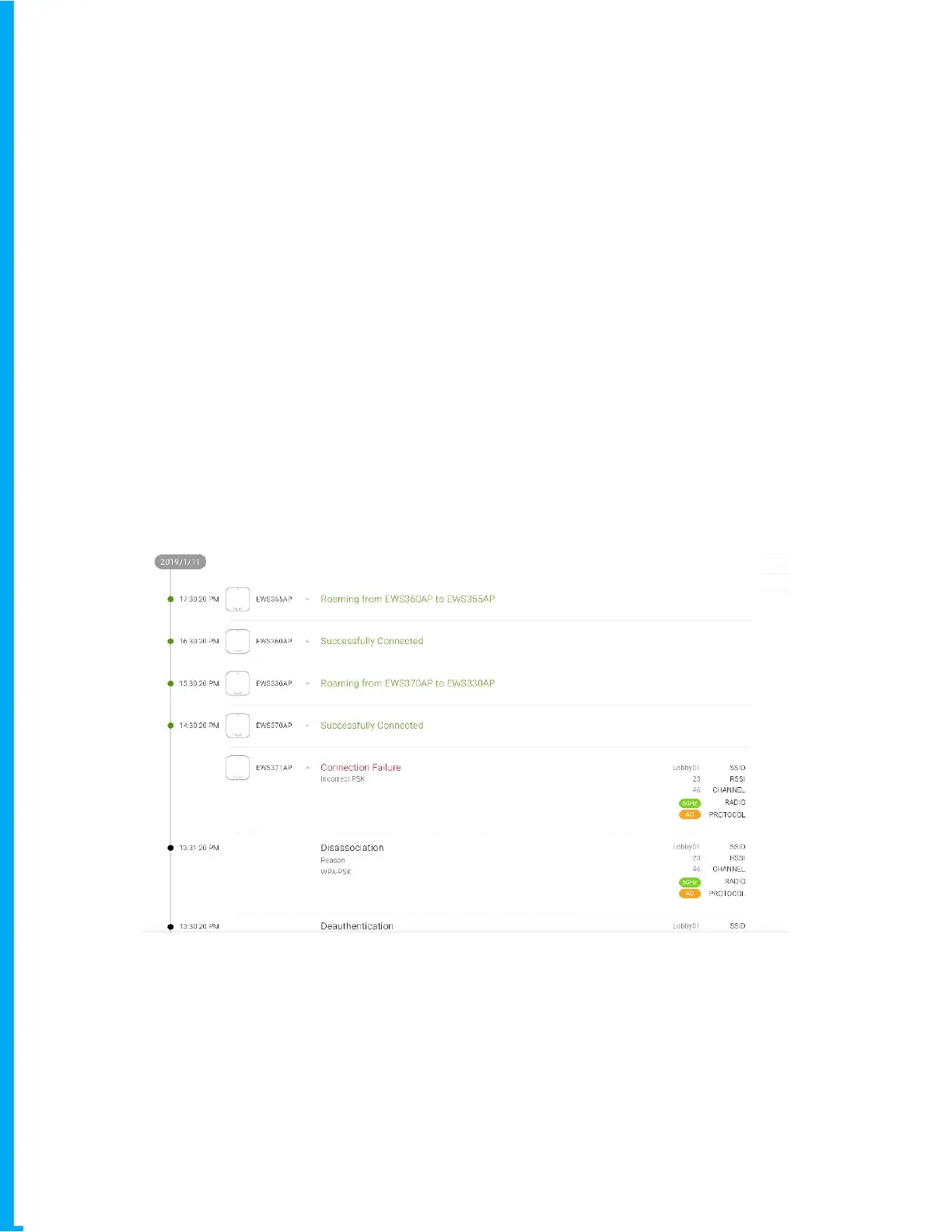 EnGenius Cloud records each client’s journey in the network with timestamps. IT
