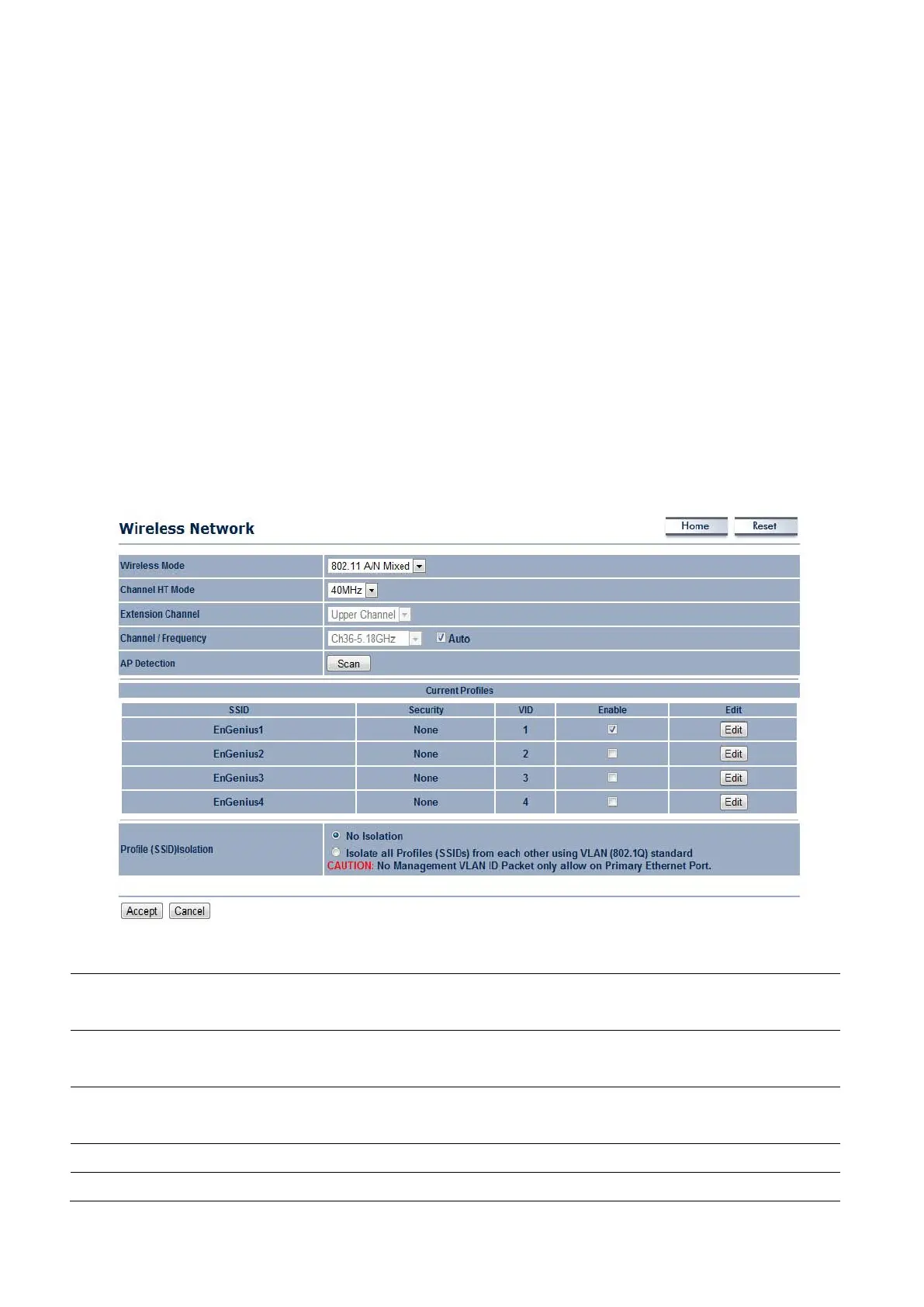 Wireless Mode The wireless mode supports 802.11a/n mixed modes. It is