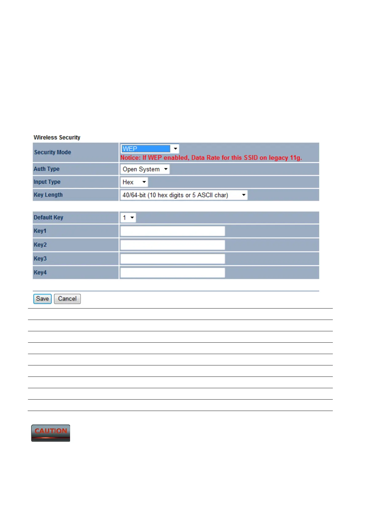 Security Mode Select WEP from the drop down list to begin the configuration.