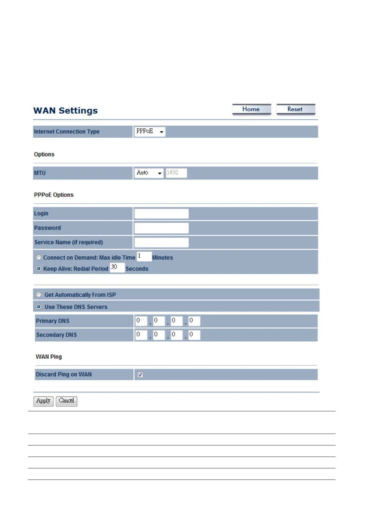 Select PPPoE as your WAN connection type if your ISP provides Username and Password.
