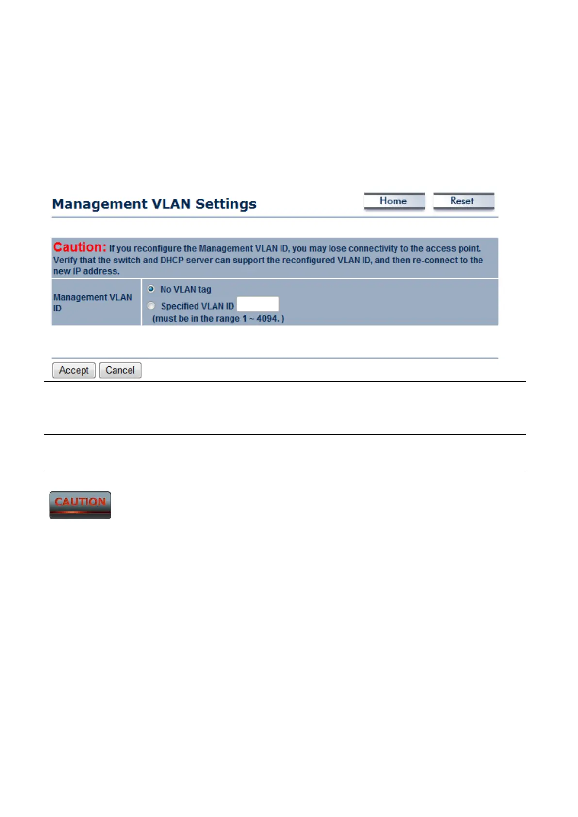 Management VLAN ID If your network includes VLANs and if tagged packets need to