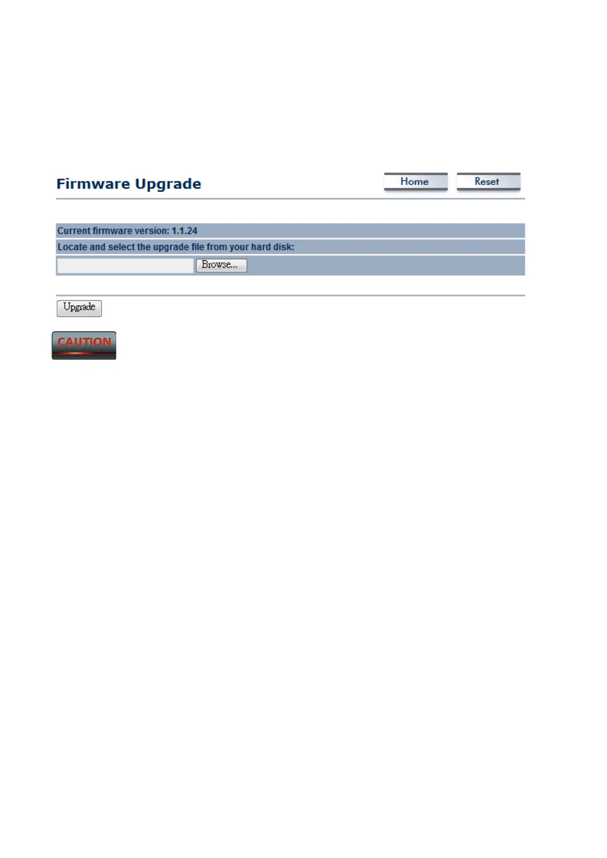 Click on the Firmware Upgrade link under the Management menu. This page is used to