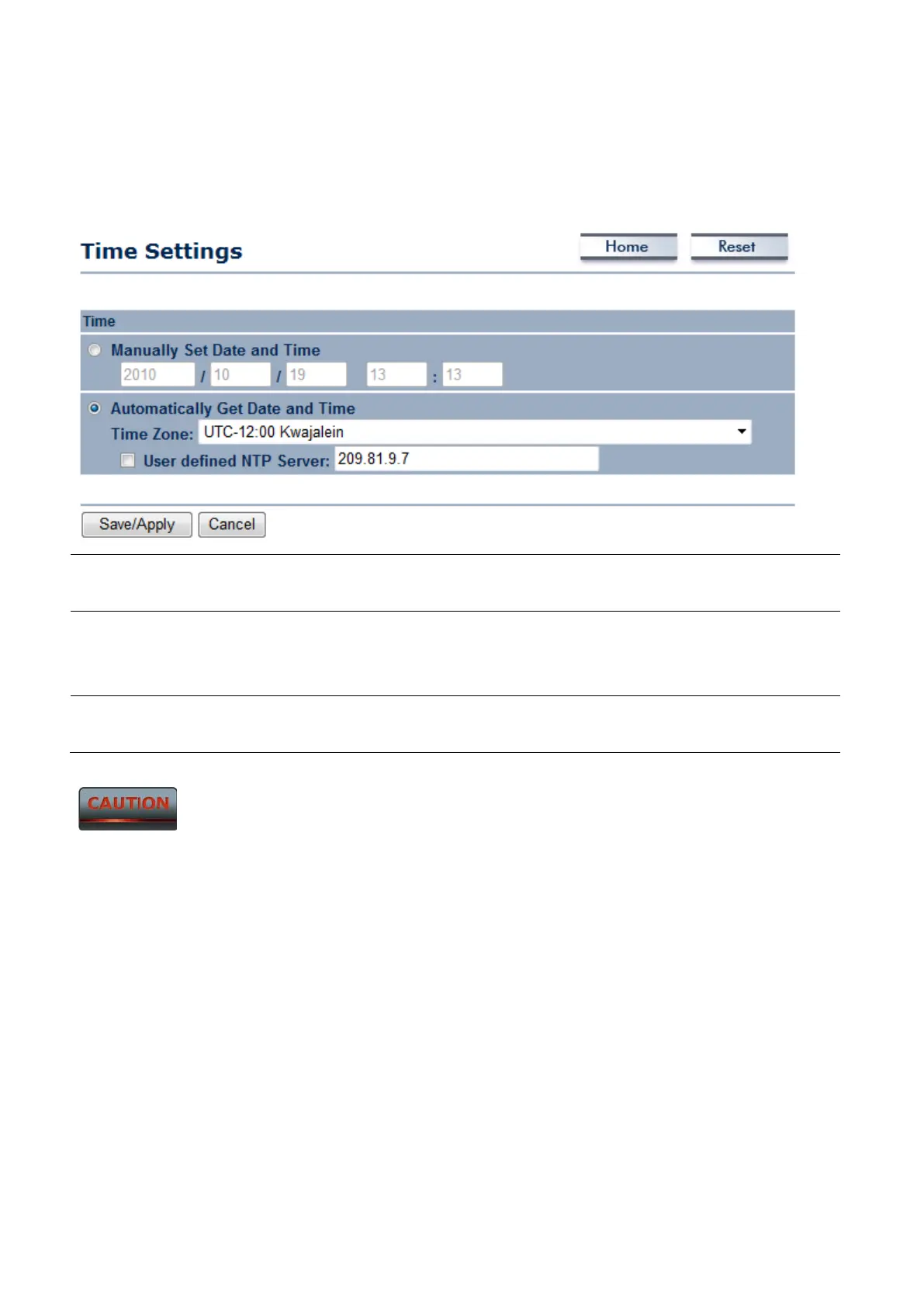 configure the time on the device. You may do this manually or by connecting to a NTP server.