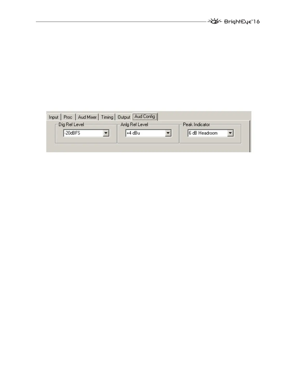 • Dig Ref Level – selects the digital reference output level. This pulldown