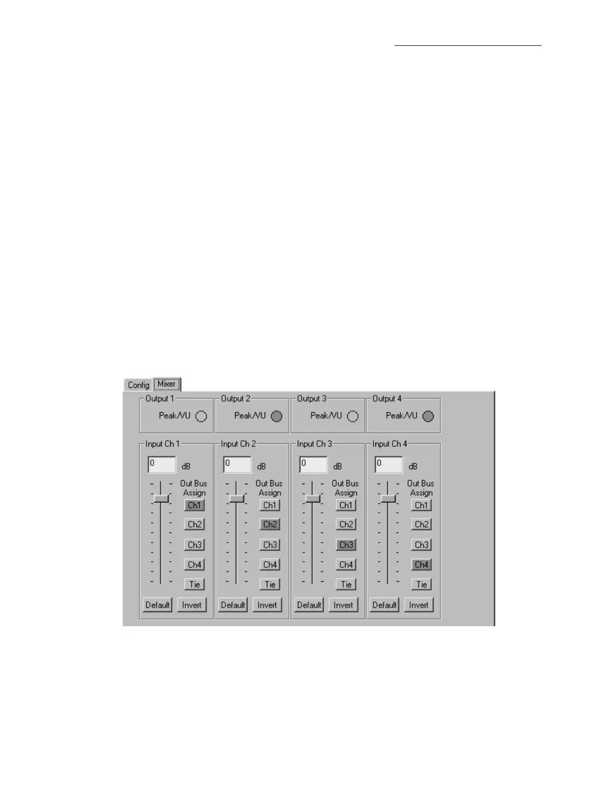 • Outputs 1-4 – provides peak/VU status, with the same methodology as the