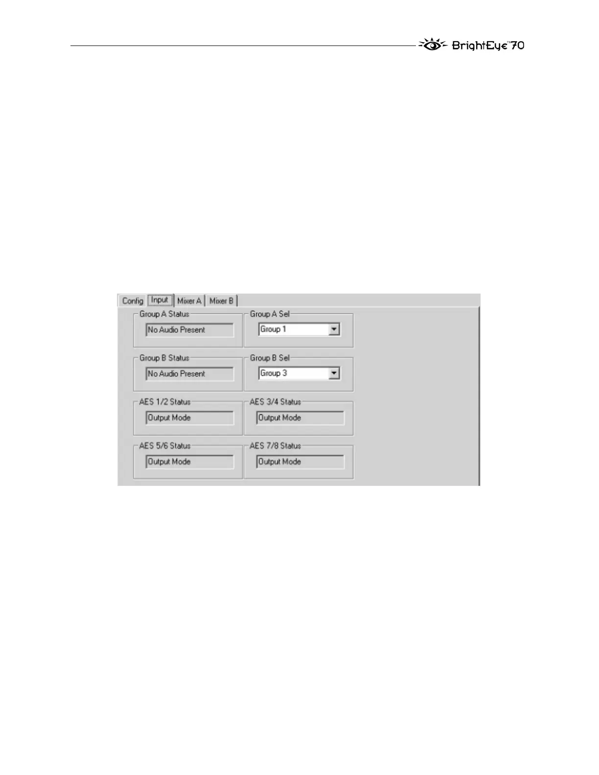 • AES 1/2, 3/4, 5/6, 7/8 Status – in Demux mode, the AES inputs will