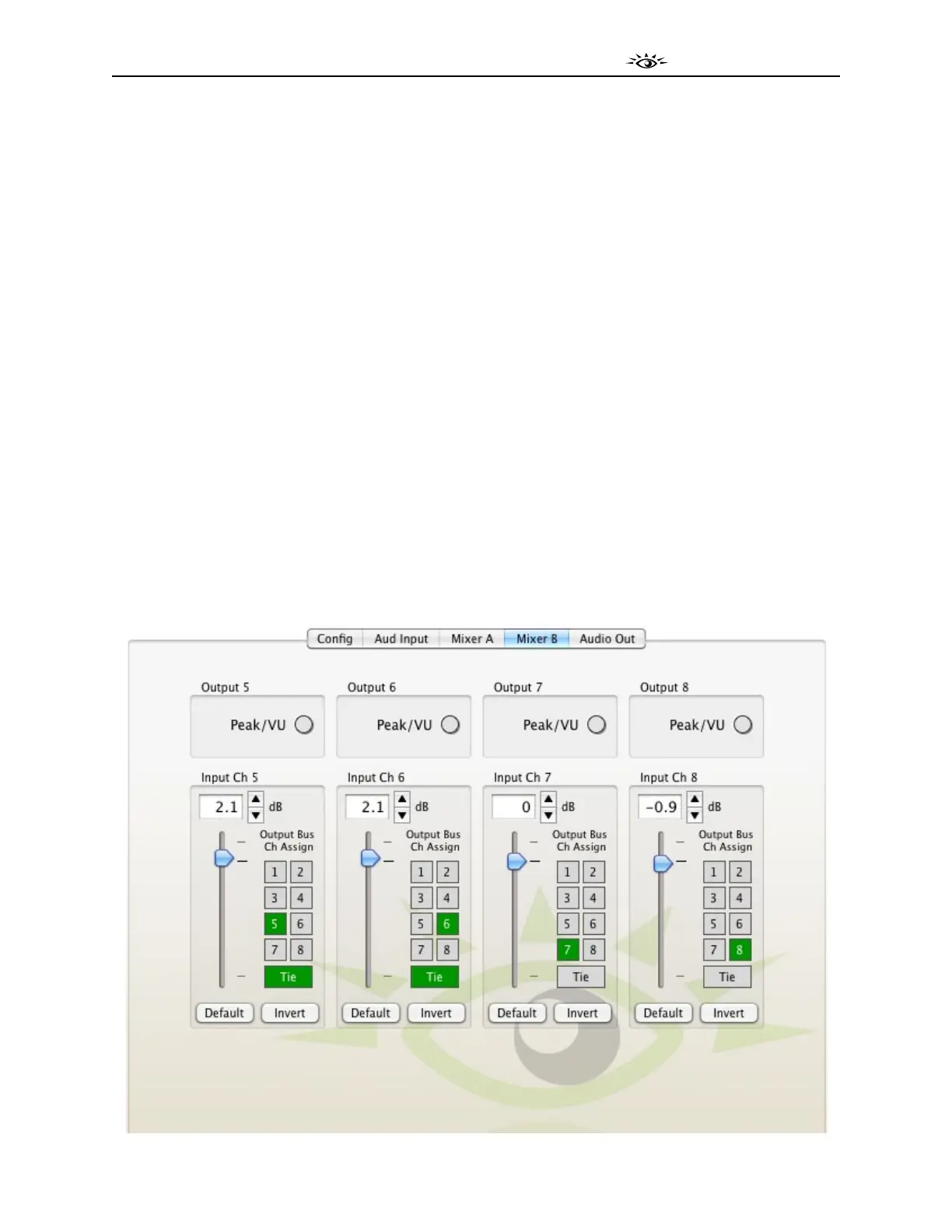 • Outputs 5-8 – provides peak/VU status, with the same methodology as the front panel VU