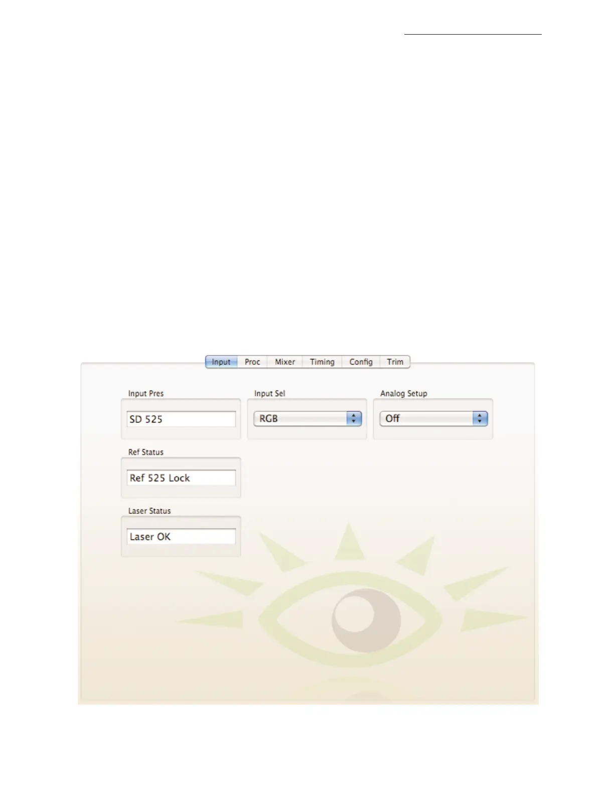 •Input Sel– select the type of input signal to the unit from the pulldown as