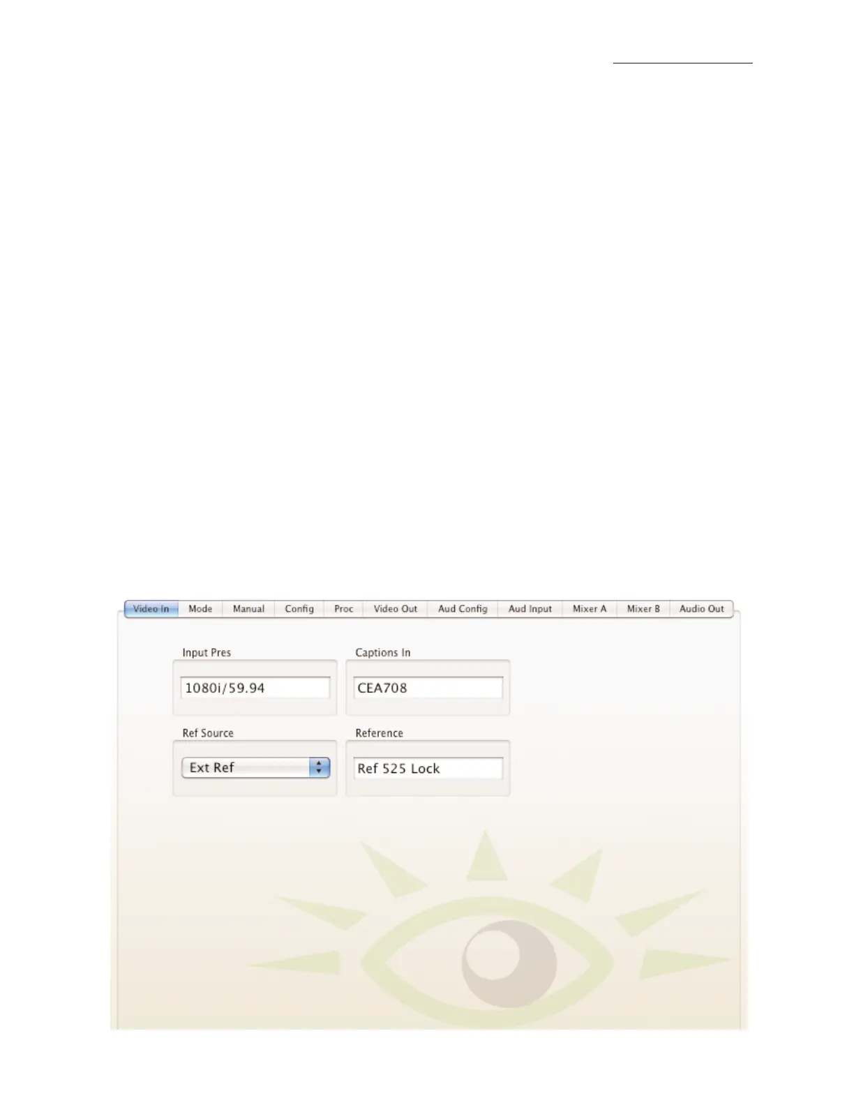 signal. Ext Ref indicates that the video output will be locked to the external