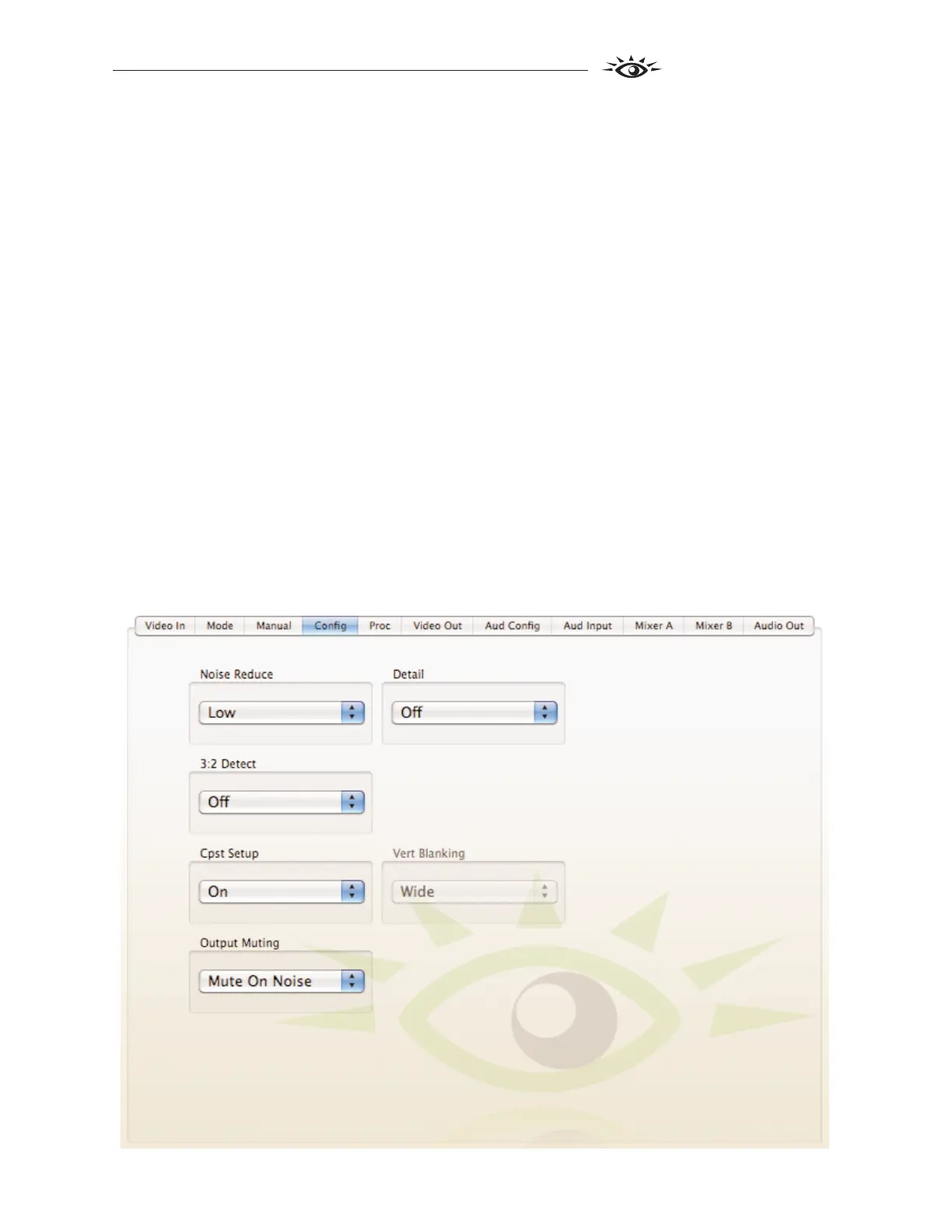 • Vert Blanking – sets the blanking mode to Narrow (lines 1-9 are blanked