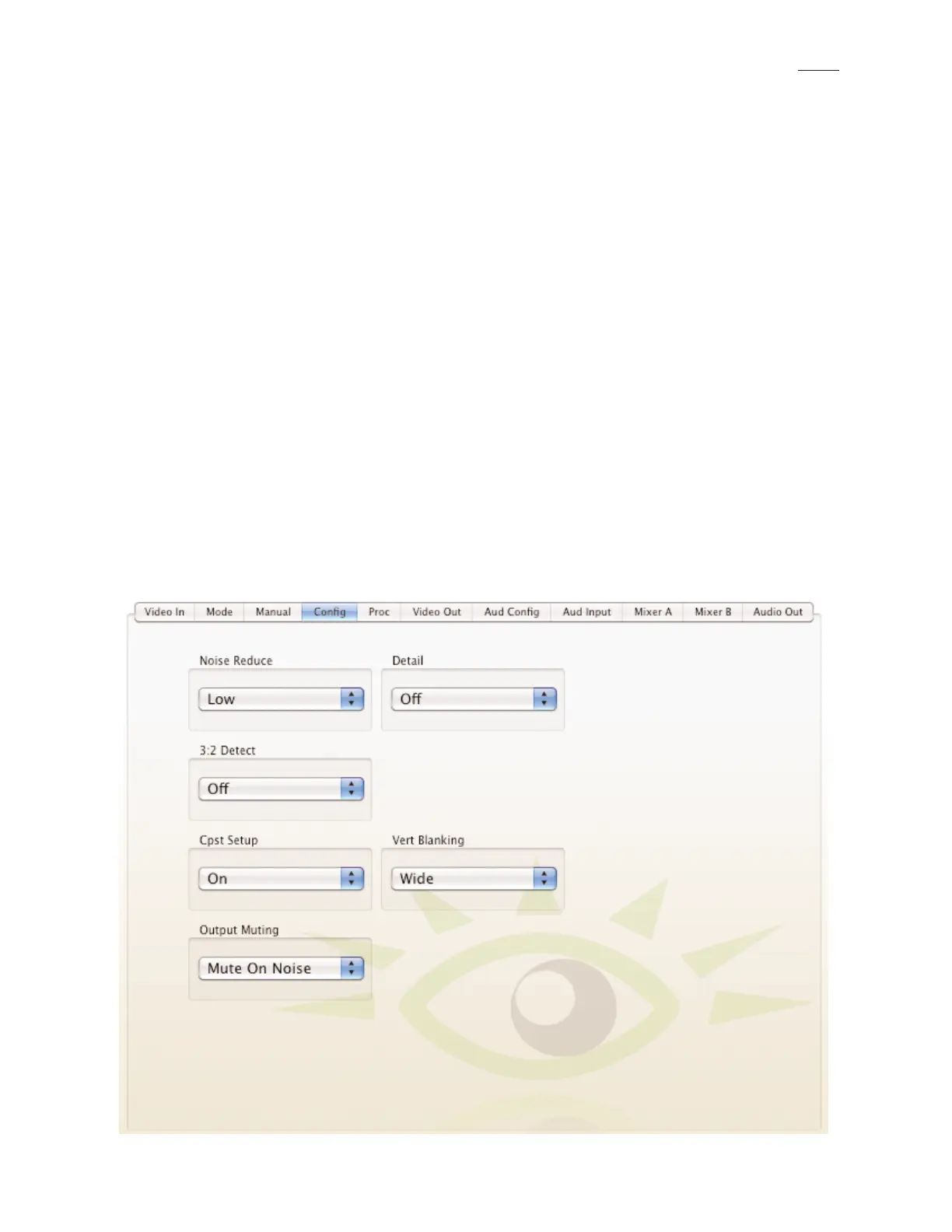 • Vert Blanking – sets the blanking mode to Narrow (lines 1-9 are blanked
