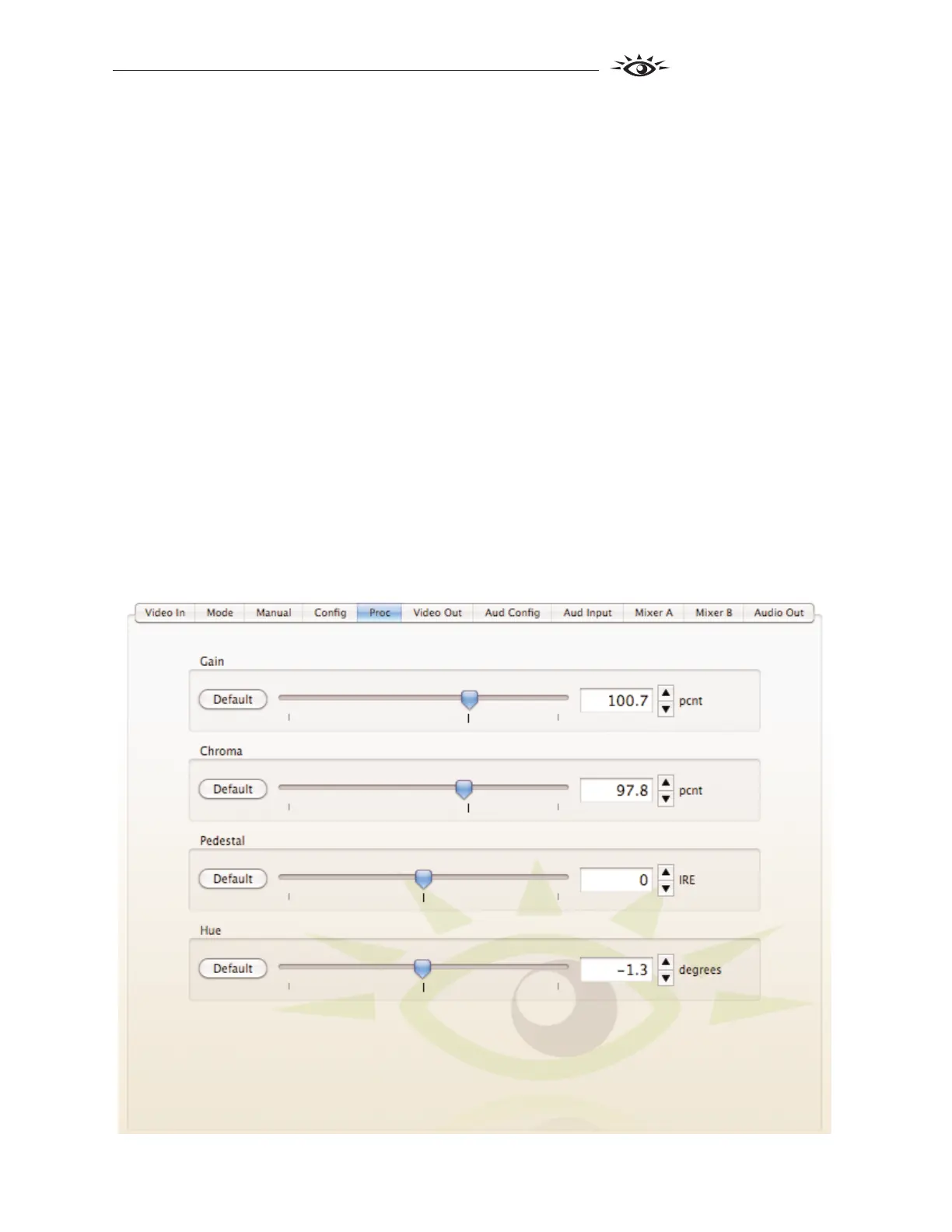 • Gain – adjusts the percentage of overall gain (luminance and chrominance)