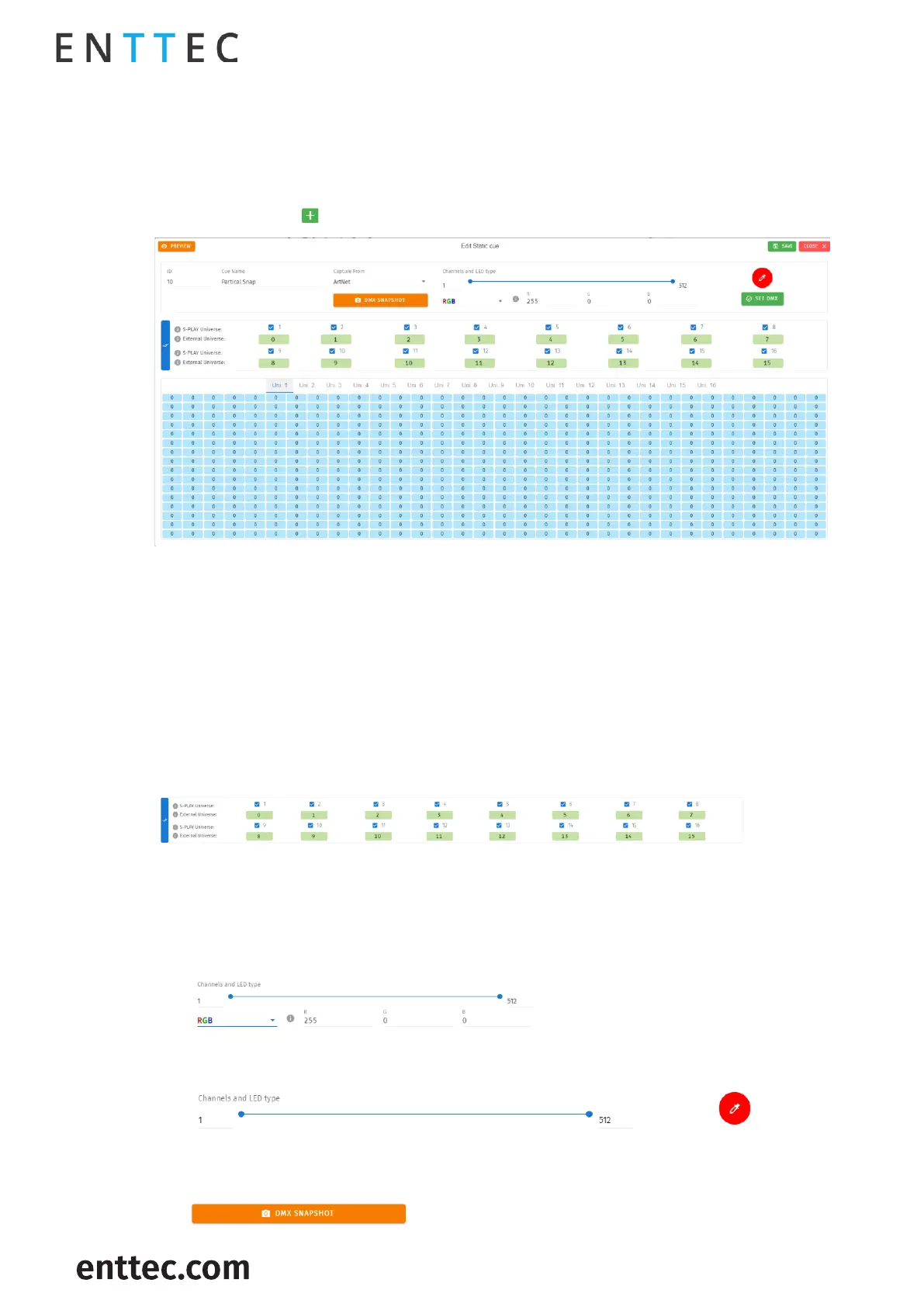 The Static Cue can be generated by either capturing DMX snapshot from external sources or using the