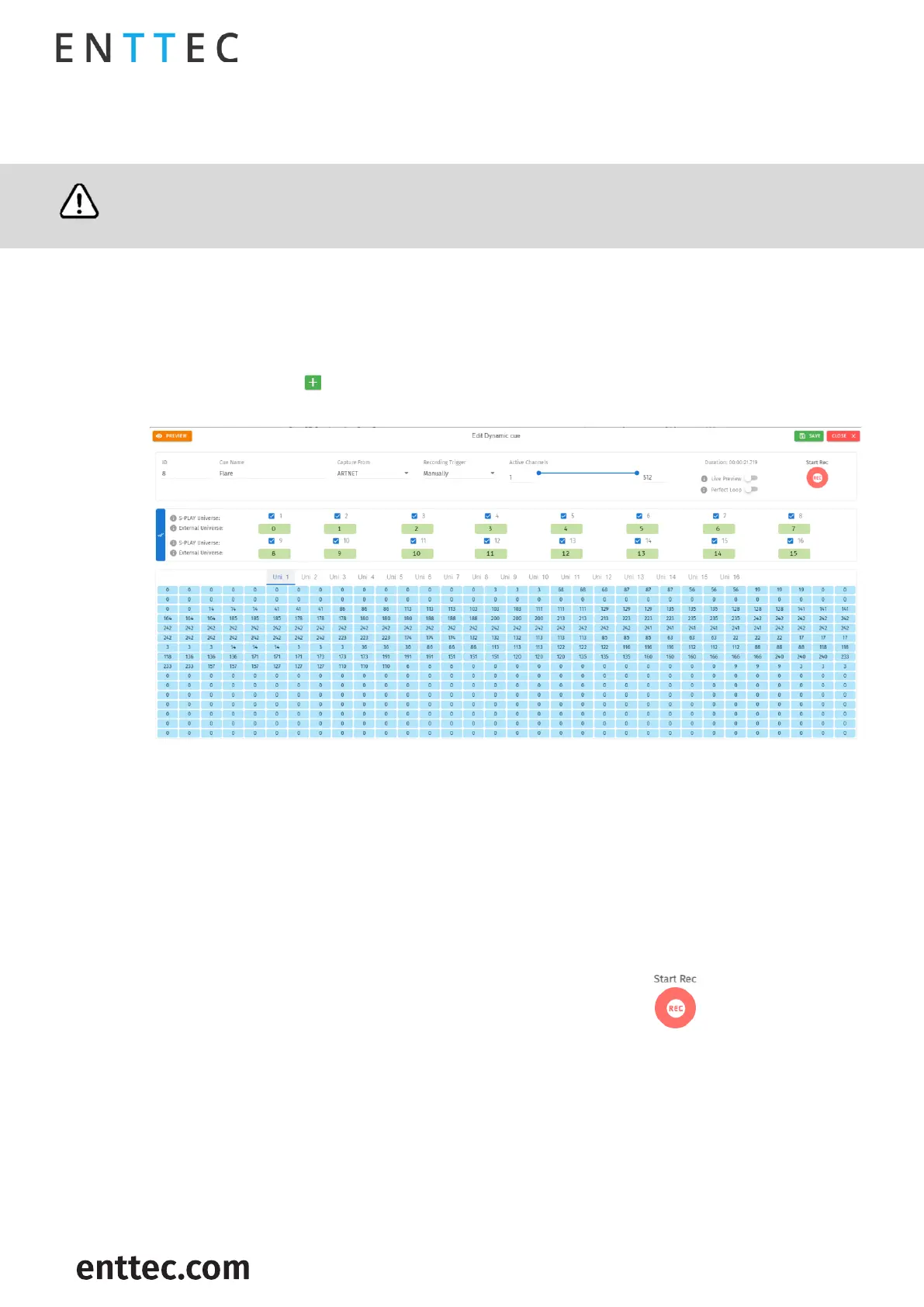 Dynamic Cues are recordings that allow DMX/Art-Net/sACN streams to be recorded and integrated into