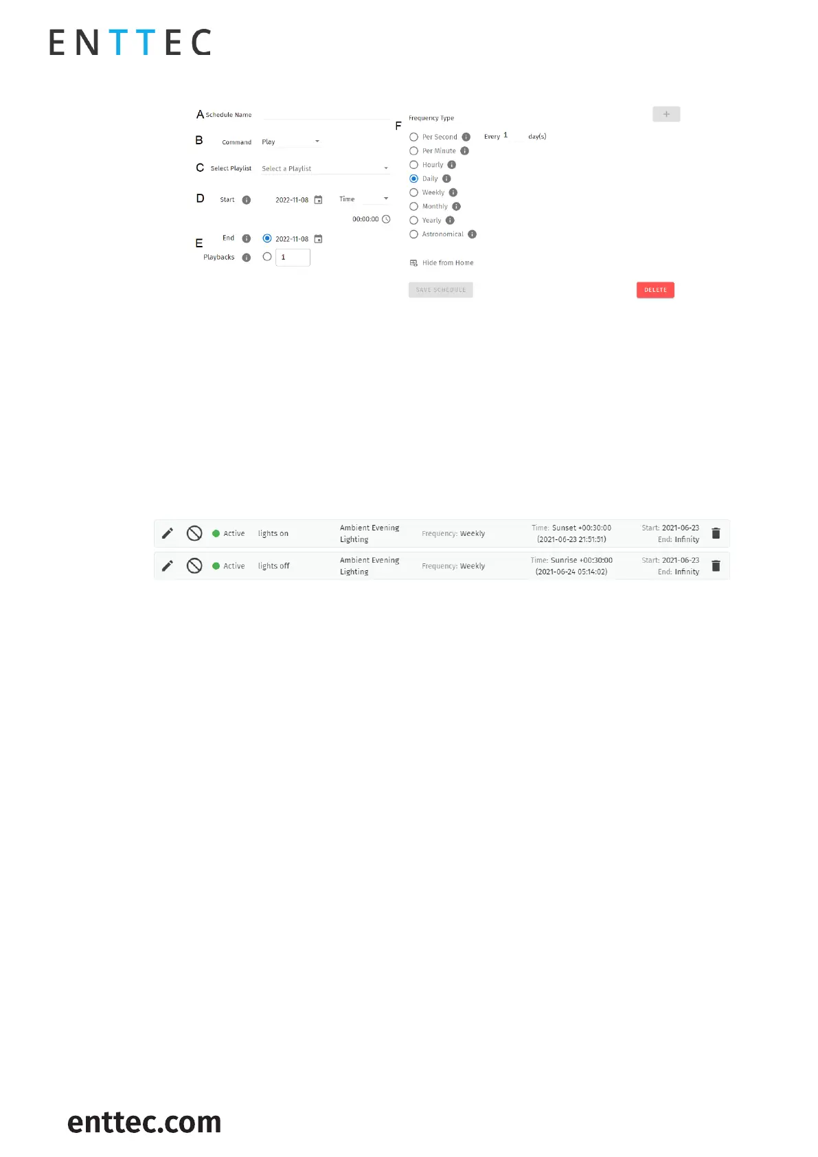 Delete: Delete selected schedule.