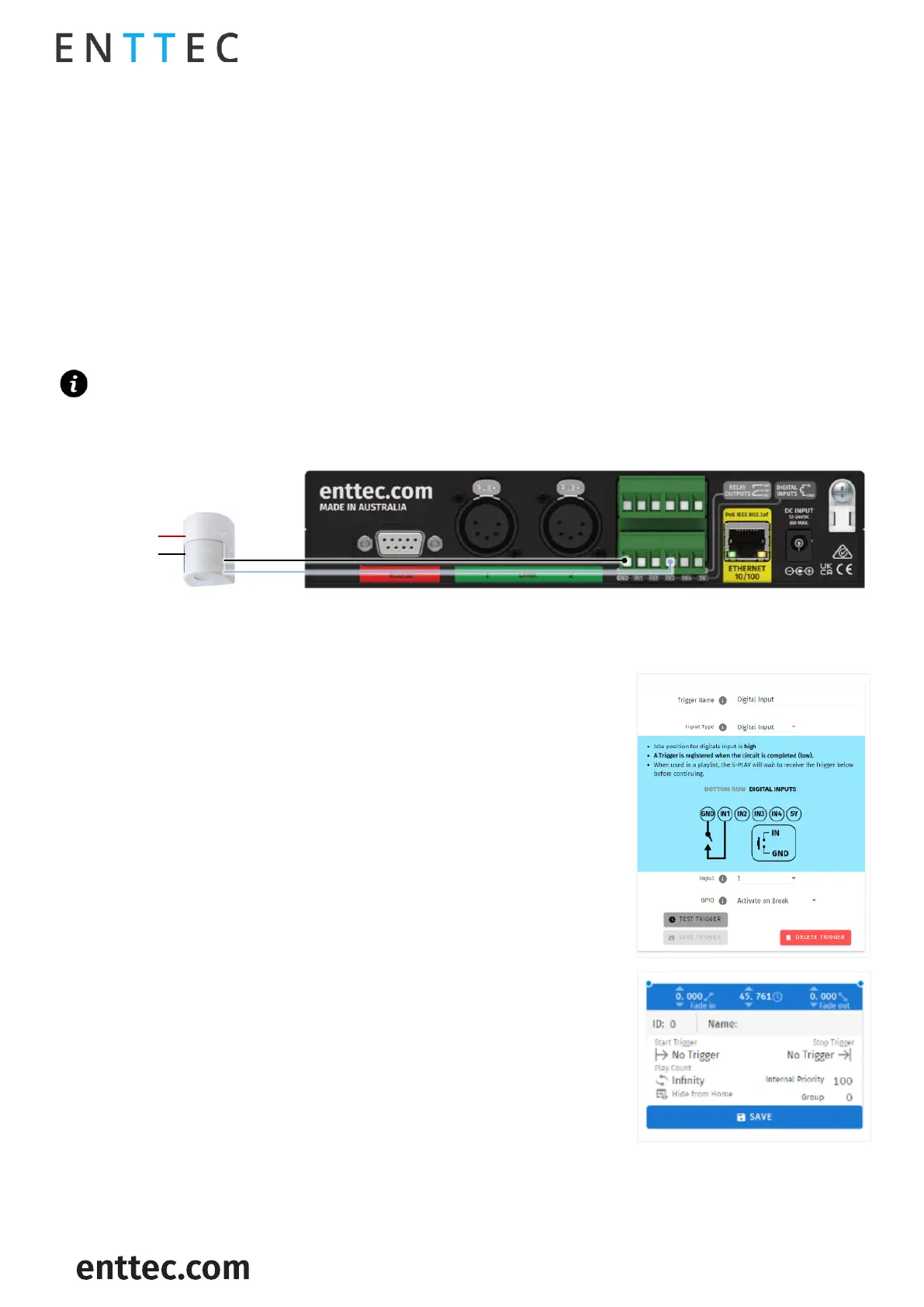 If you require a remote input trigger further away from the S-PLAY LITE than 50m, ENTTEC recommend
