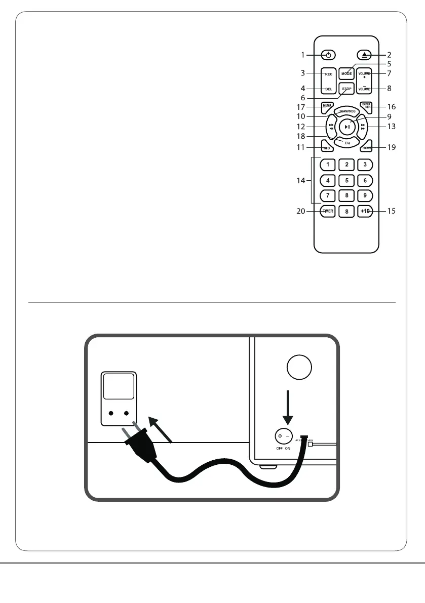 Steek de voedingskabel in een AC-stopcontact. Zet de aan/uitschakelaar (aan de achterzijde van het DAB-systeem) op AAN.