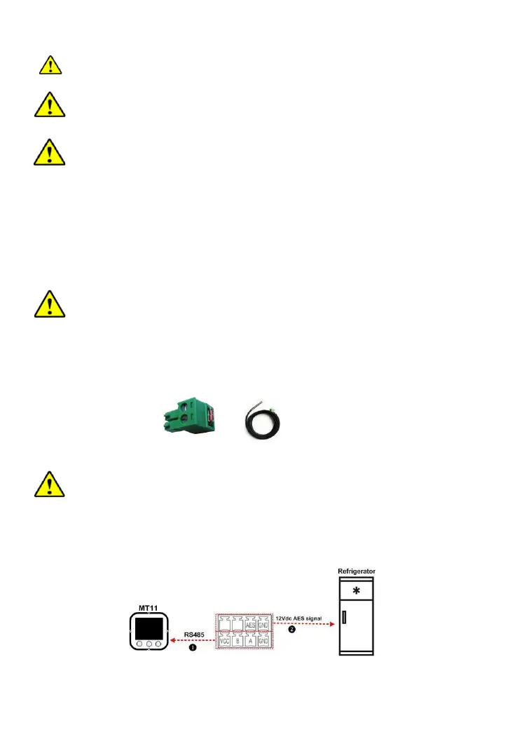 Step5: Connect the remote meter MT11❻ and AES signal of the refrigerator❼