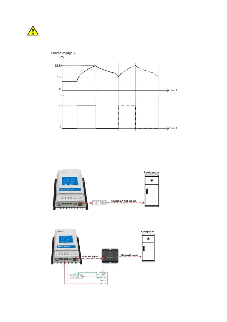 voltage is the battery voltage.Connect the refrigerator, refer to the below picture.
