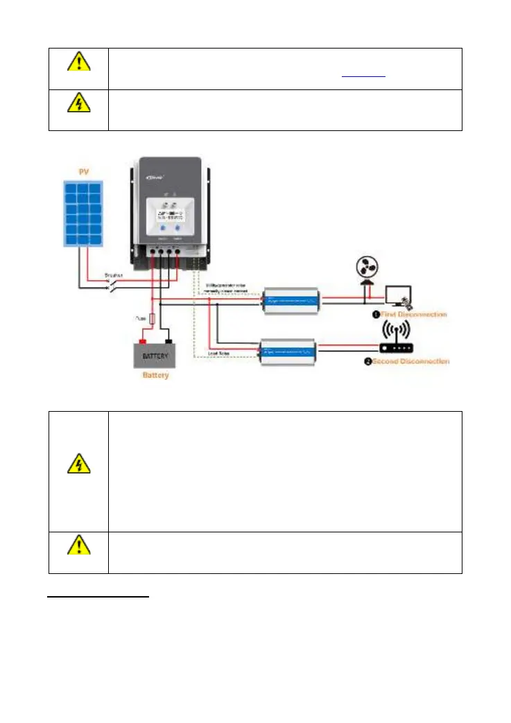 Risk of electric shock! When wiring the solar modules, the PV array can produce a