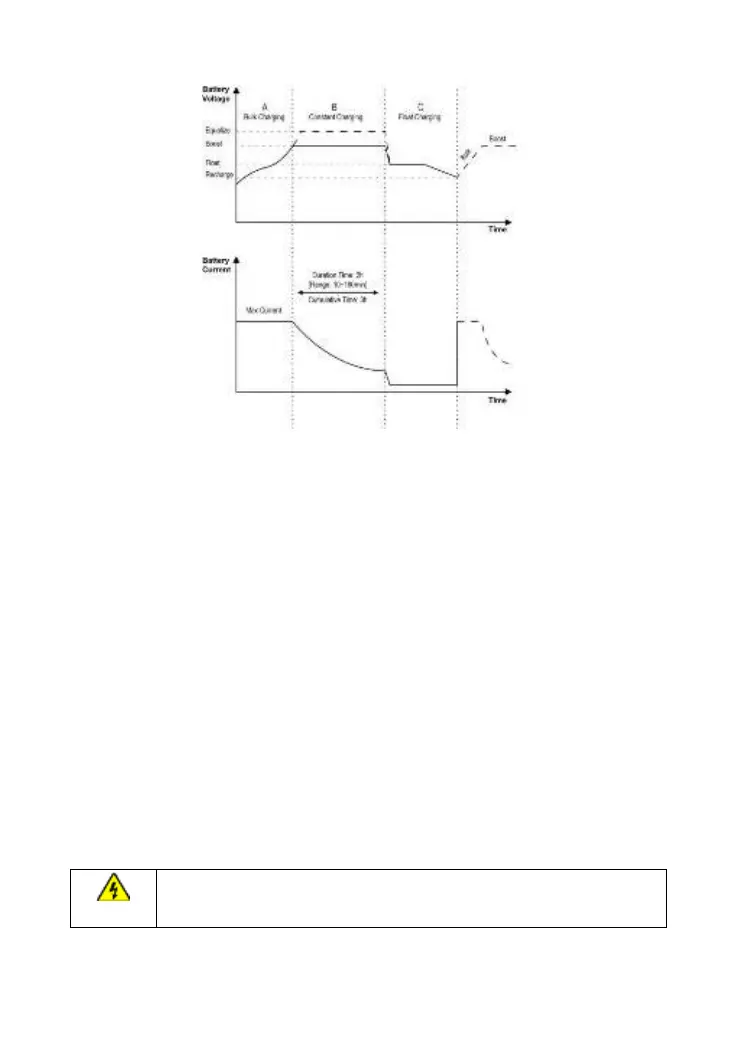 drop gradually simultaneously. Constant charging has two stages, namely, equalize charging and boost
