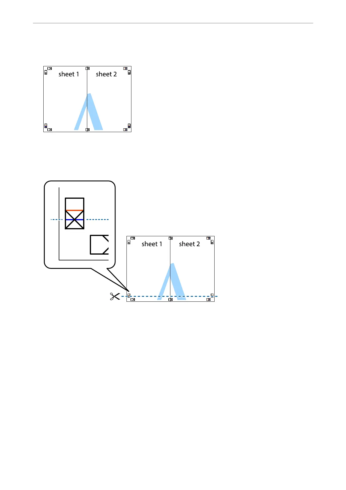 the margins of Sheet 1 and Sheet 2 along the horizontal blue line through the center of the