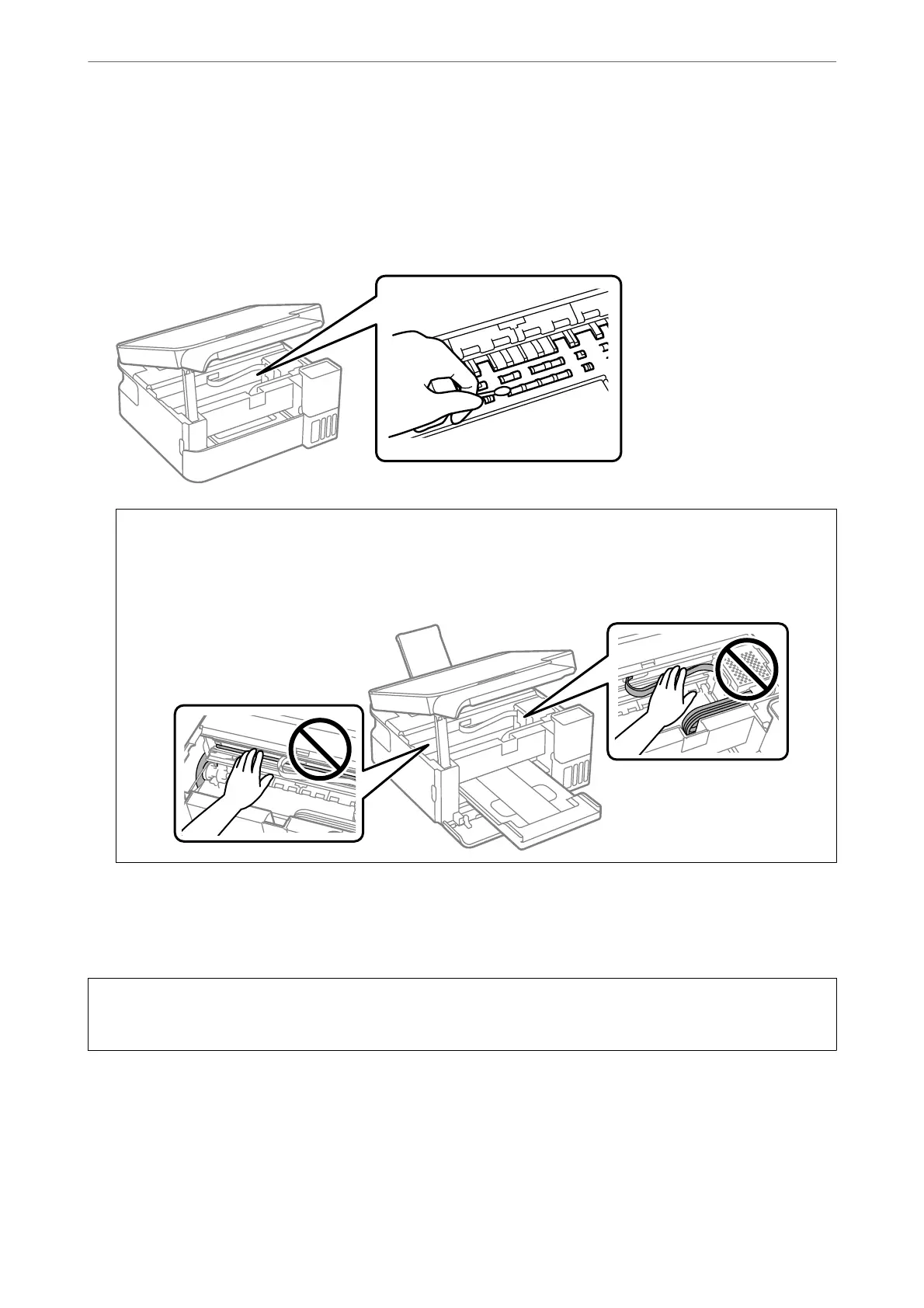 O Do not use tissue paper to clean the inside of the printer. e print head nozzles may be clogged with lint.
