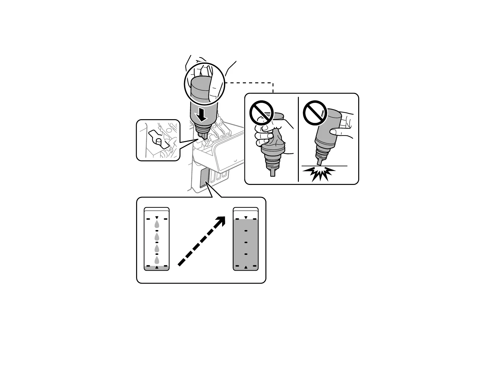 line of the tank, do not remove and reinsert the bottle or ink may leak.
