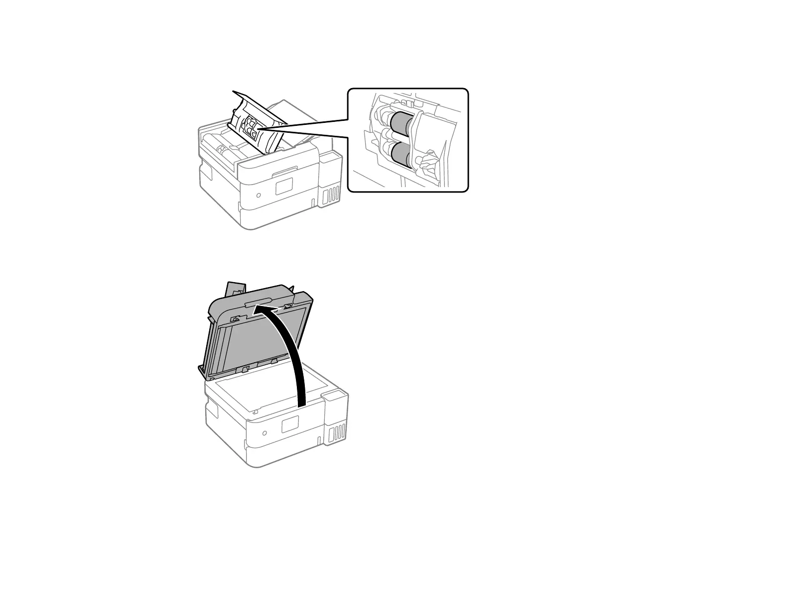 4. Use a soft, moistened, lint-free cloth (microfiber is recommended) to clean the rollers and the interior