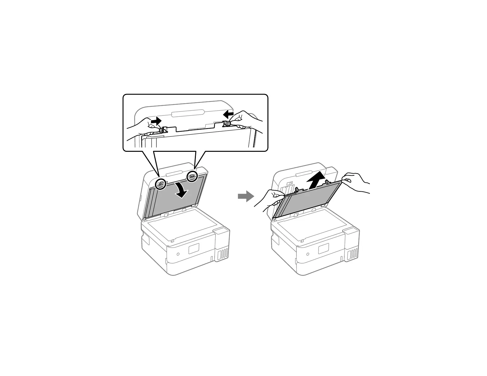 7. Release both tabs and remove the document mat.