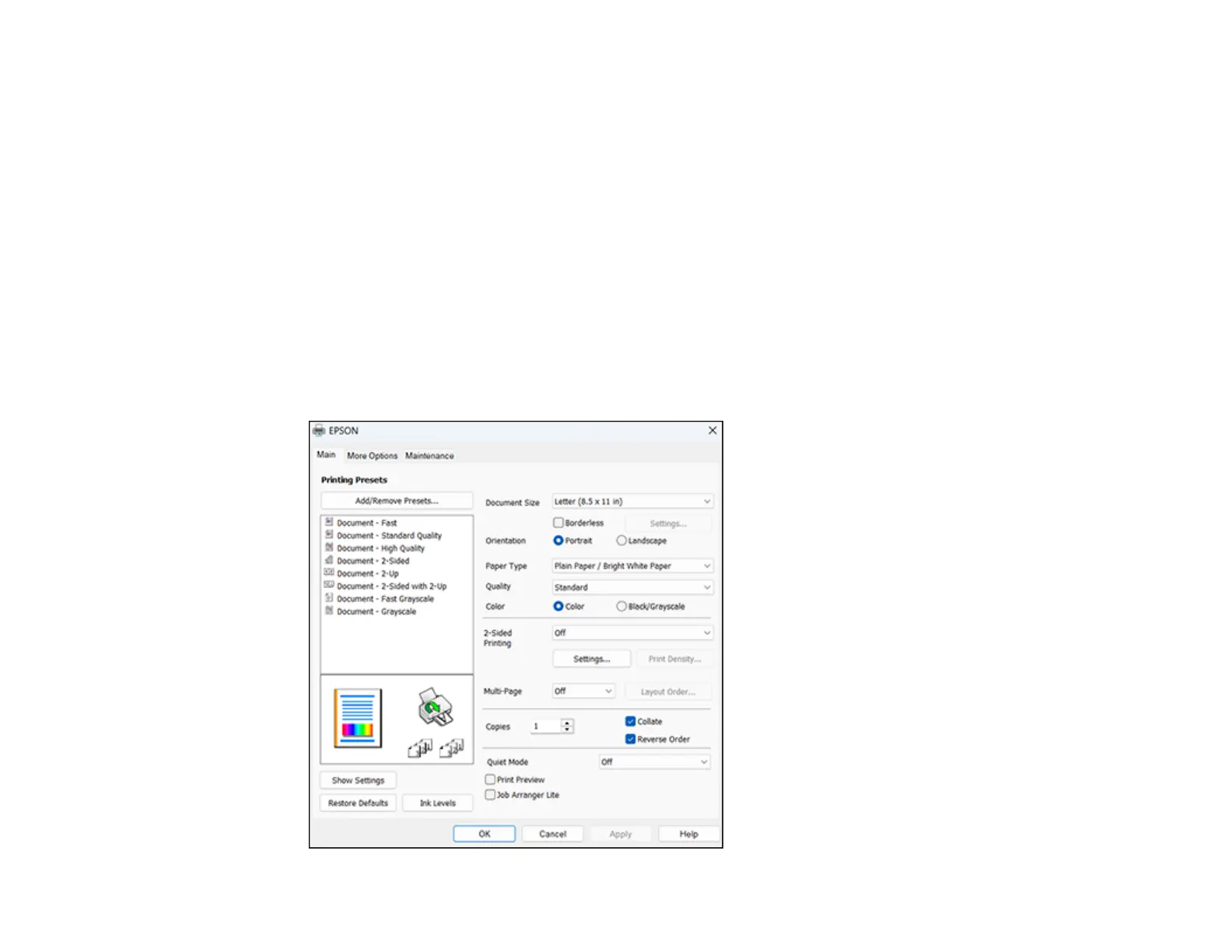 Note: You may also need to select Properties or Preferences to view your print settings.