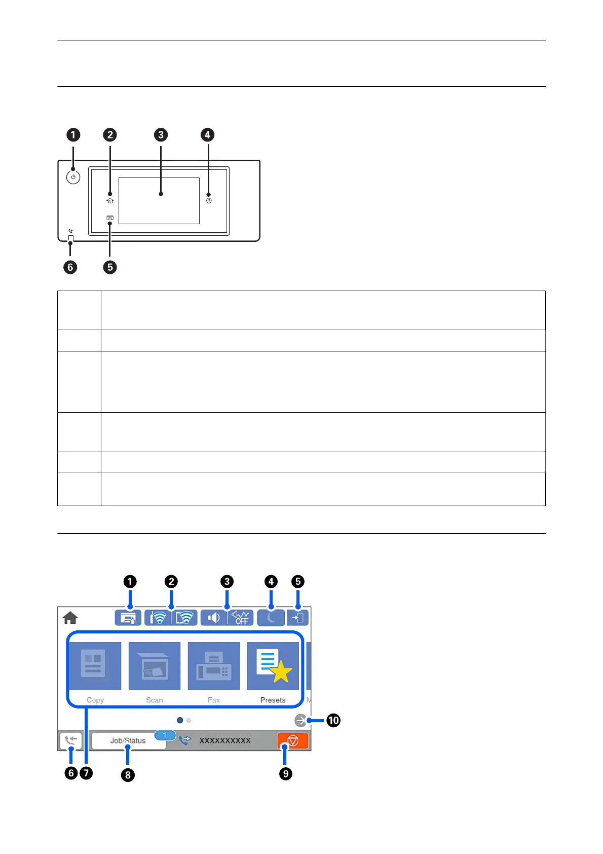 Hiermee geeft u menu's en berichten weer. U kunt het bedieningspaneel in een andere hoek zetten.