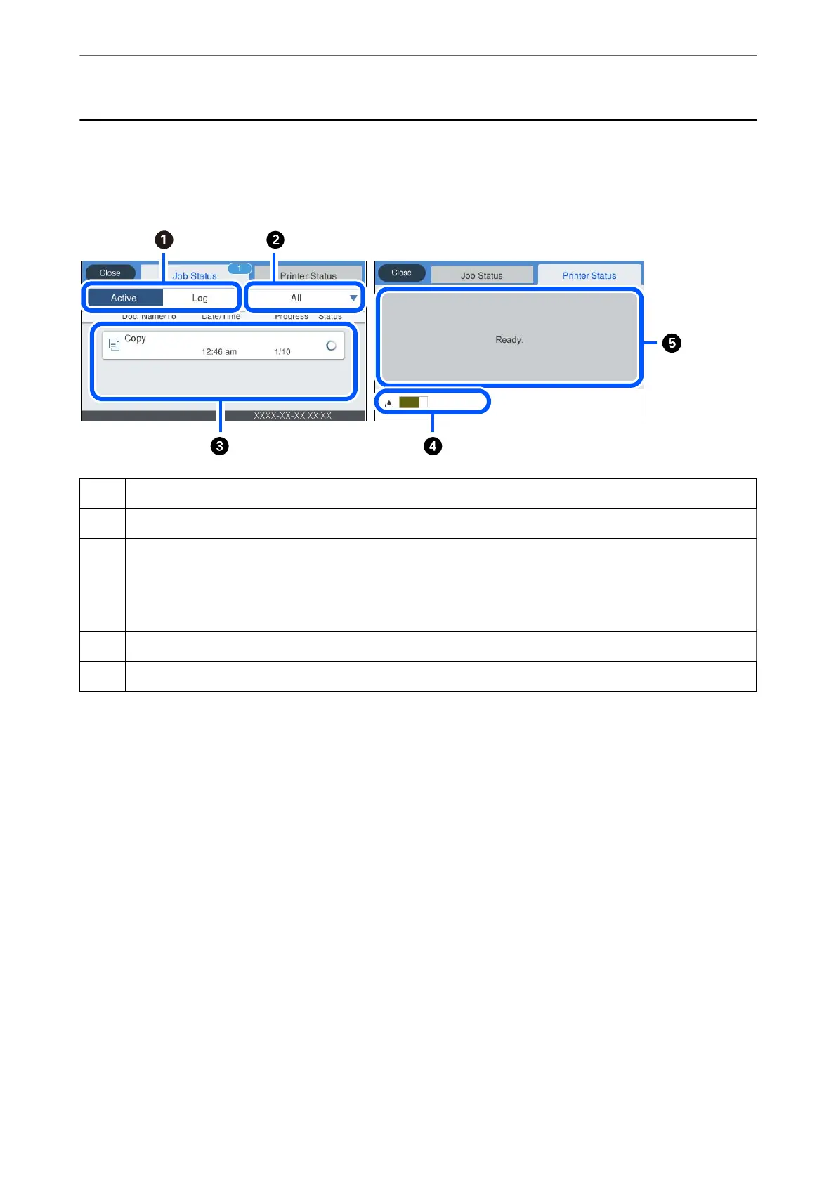 Selecteer Job/Status op het startscherm om het scherm Job/Status weer te geven. U kunt de status van de printer of