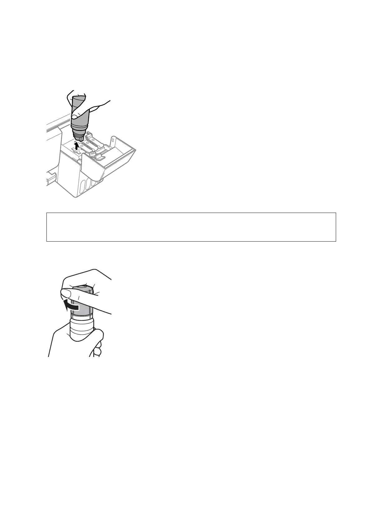 If any ink remains in the ink bottle, tighten the cap and store the bottle upright for later use.