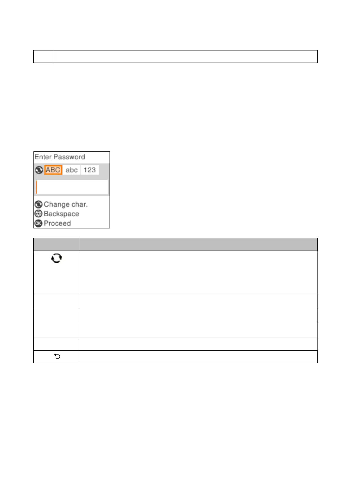 e displayed screen varies depending on the setting items. e following is the screen for entering the password
