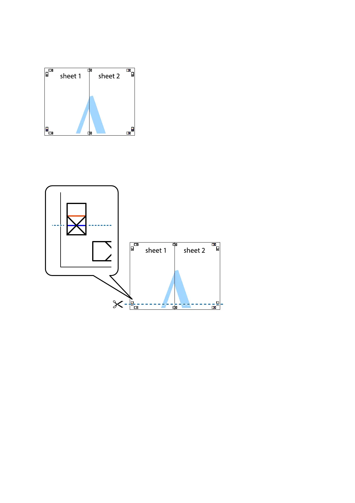 the margins of Sheet 1 and Sheet 2 along the horizontal blue line through the center of the