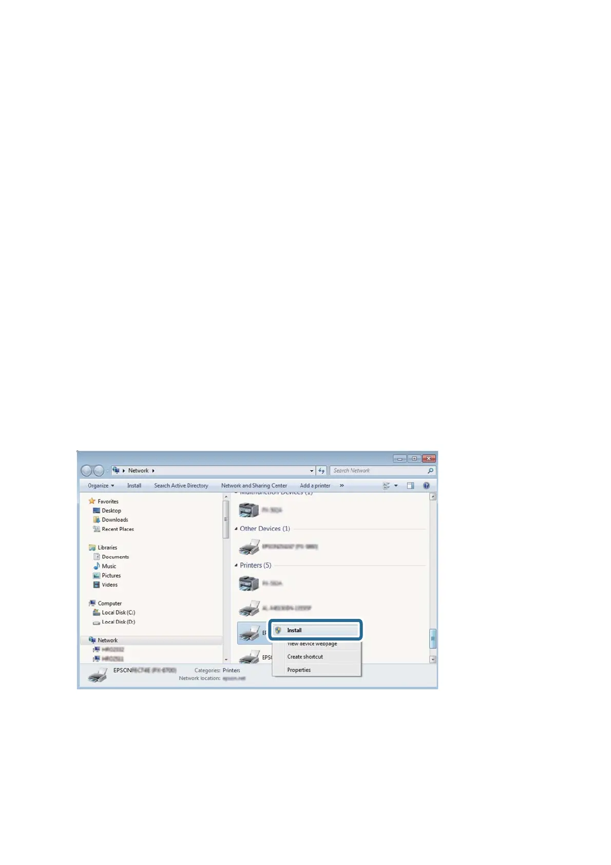 e printer name you set on the network and model name (EPSON XXXXXX (XX-XXXX)) are displayed on the
