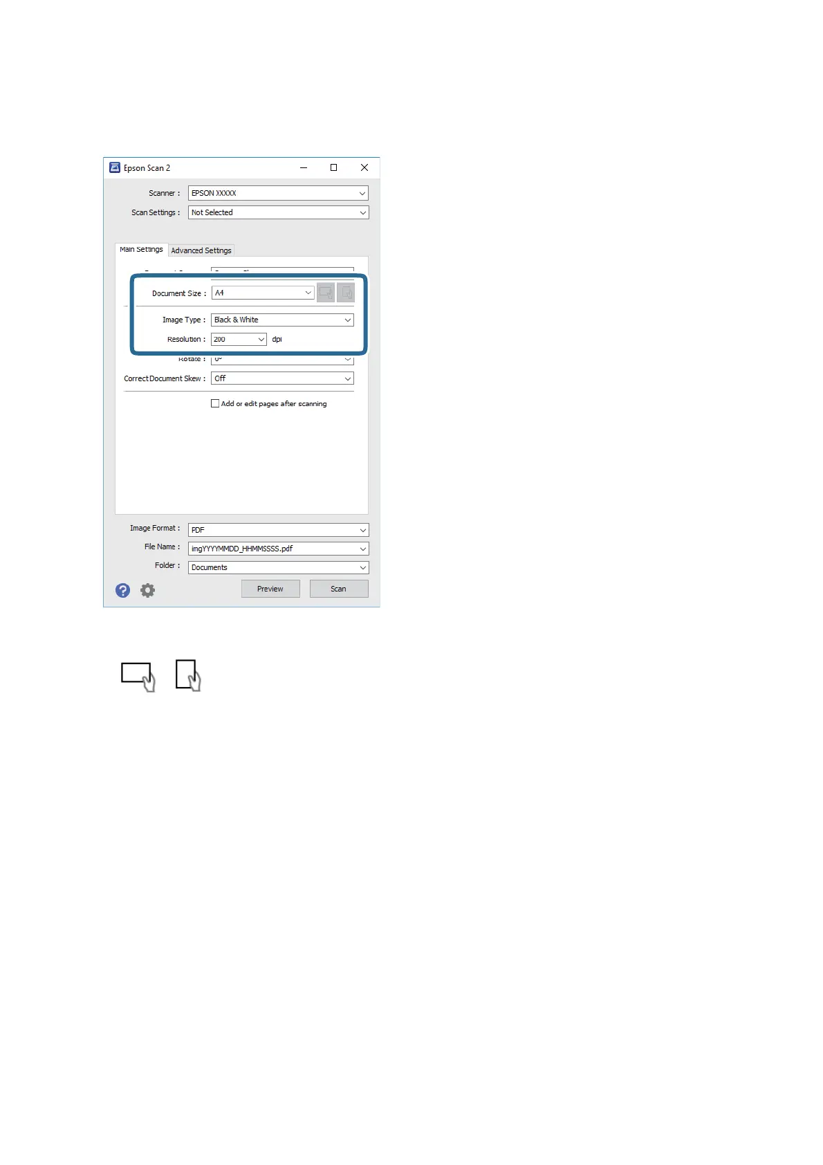 e Document Source setting is xed as Scanner Glass. You cannot change this setting.
