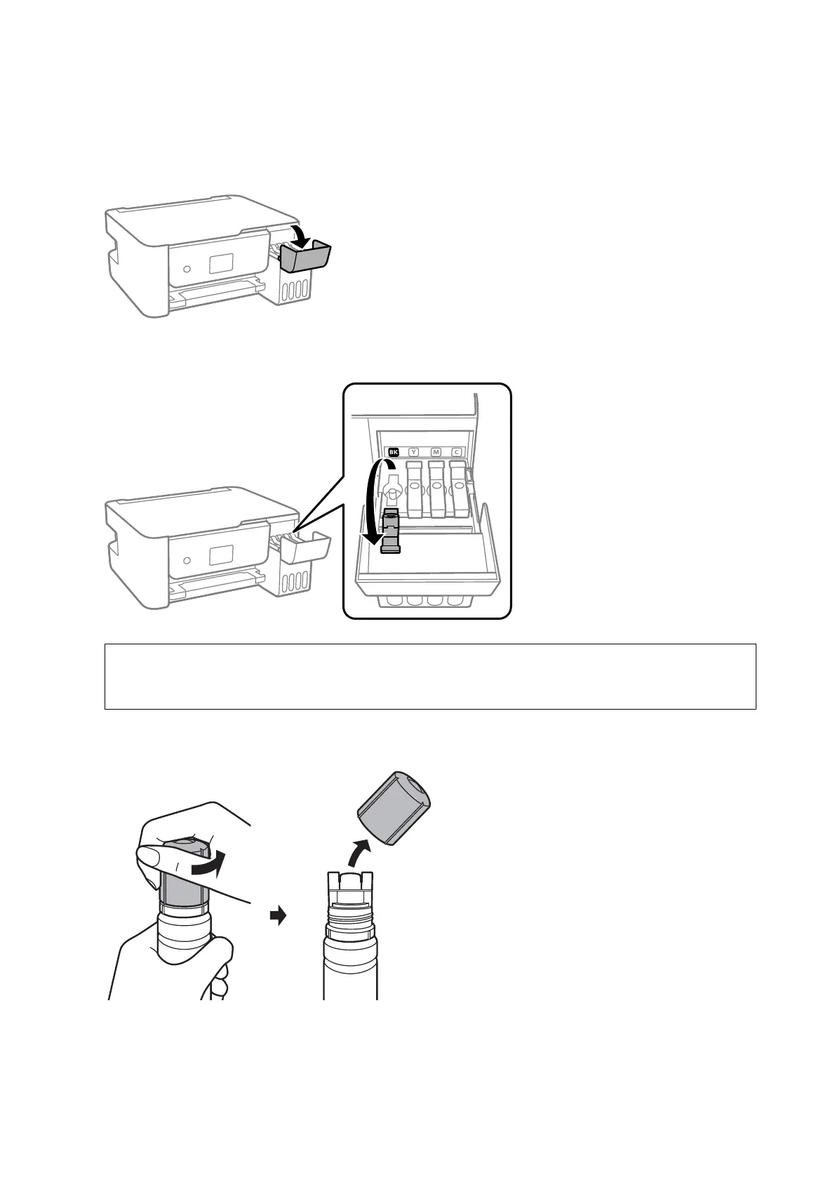 6. While holding the ink bottle upright, turn the cap slowly to remove it.