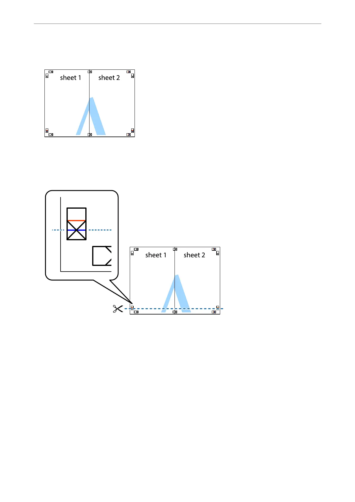 Cut o๎˜ƒ the margins of Sheet 1 and Sheet 2 along the horizontal blue line through the center of the le๎˜… and right
