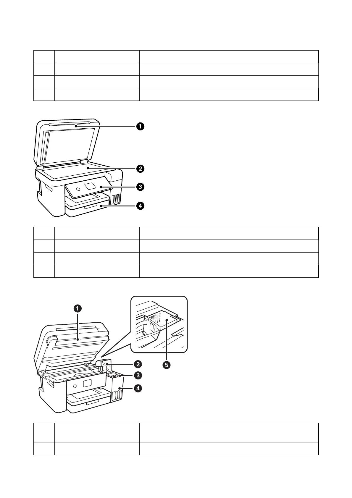 Scanner unit Scans placed originals. Open to rell the ink tank or to remove jammed
