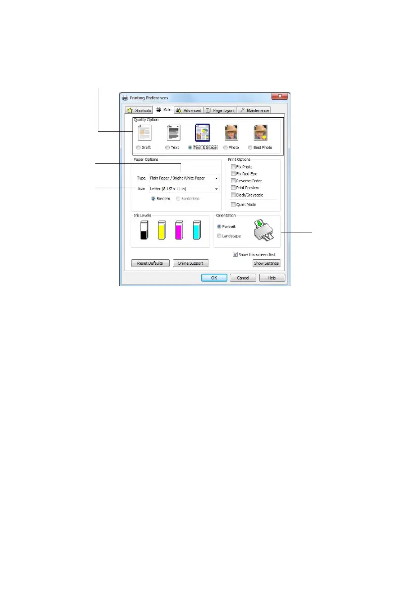 3. On the Main tab, select the basic print settings. Make sure you choose the correct