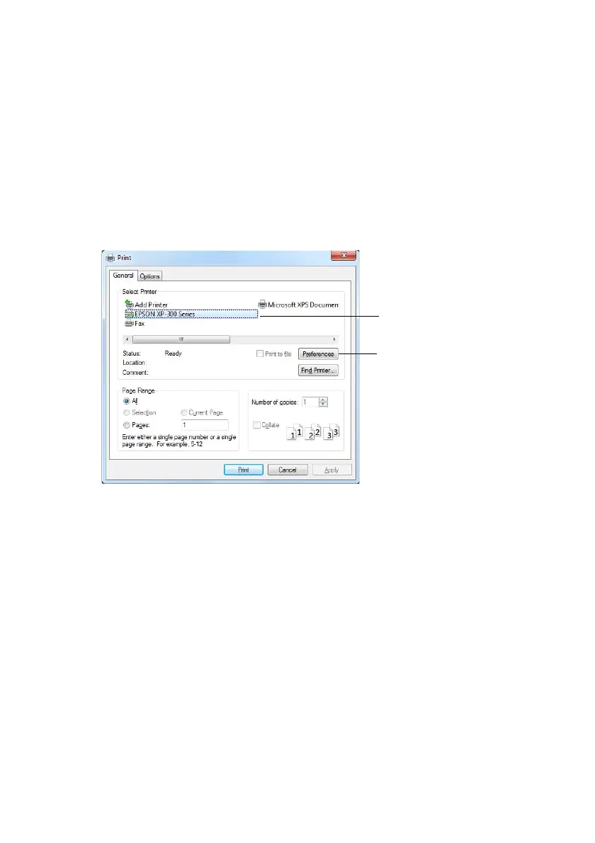 Setup, Printer, or Options button, click it. Then click Preferences or