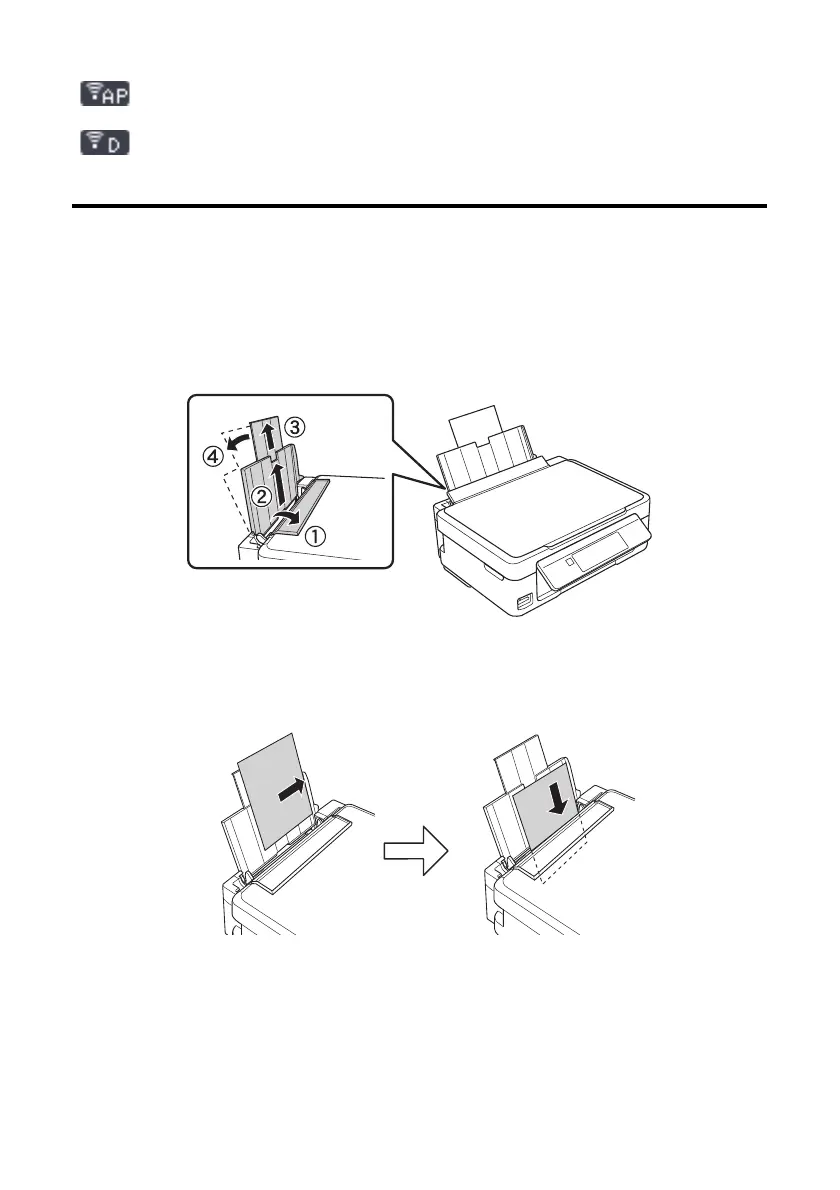 1. Open the feeder guard, extend the paper support, and tilt it backwards.