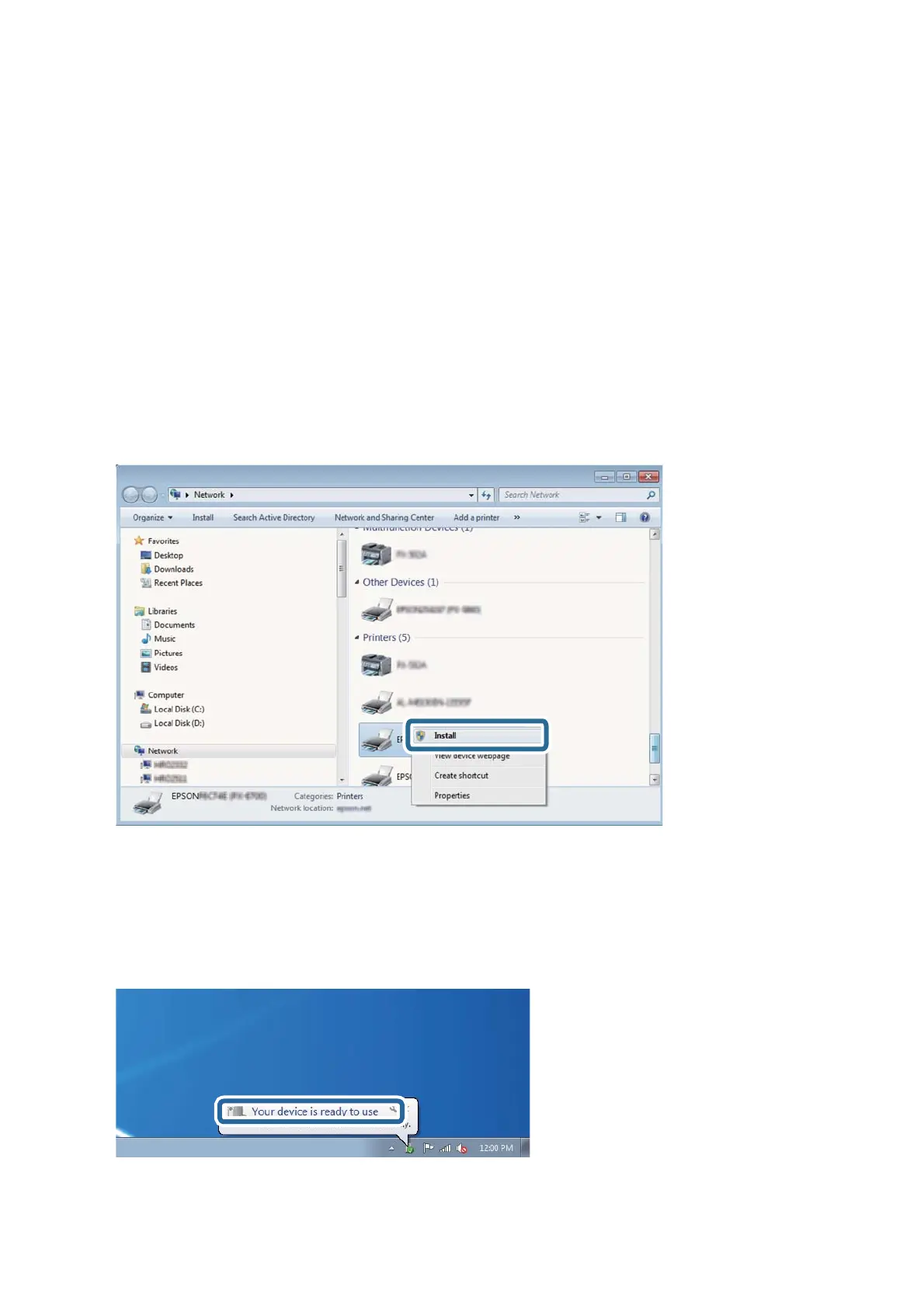 e printer name you set on the network and model name (EPSON XXXXXX (XX-XXXX)) are displayed on the