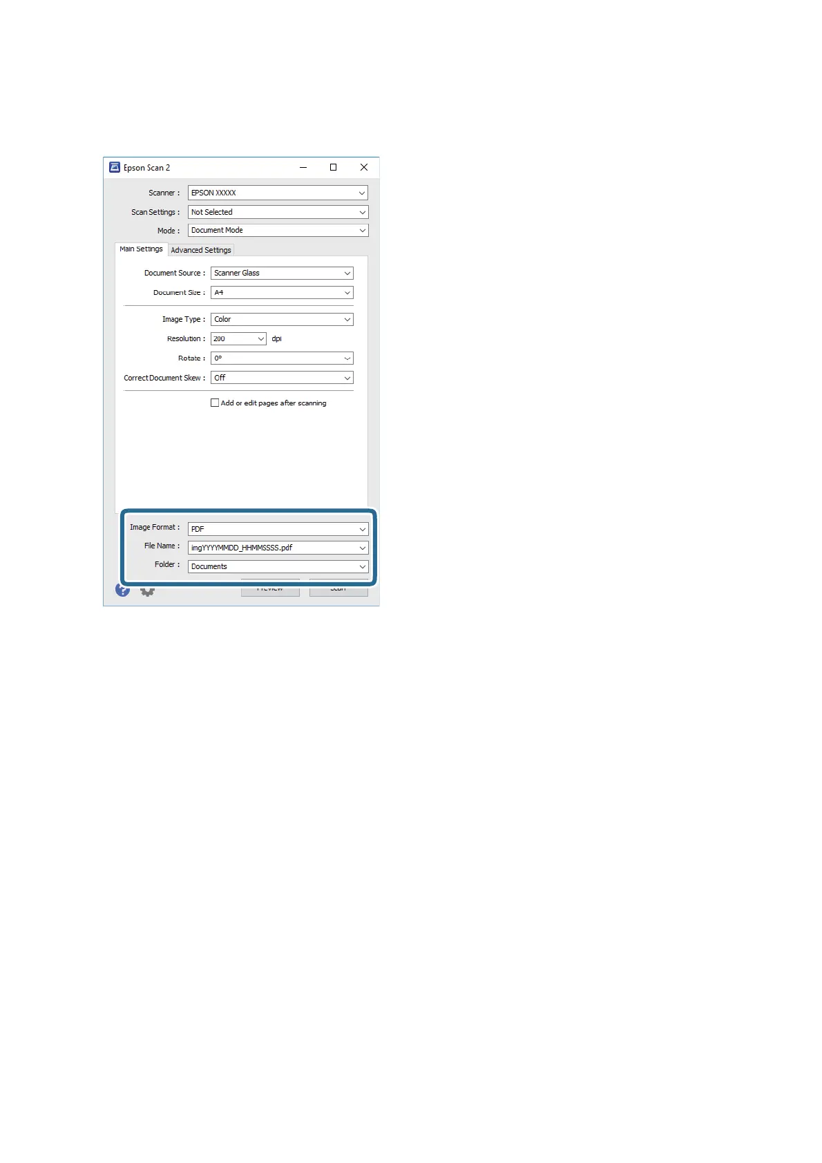 ❏ Folder: Select the save folder for the scanned image from the list.